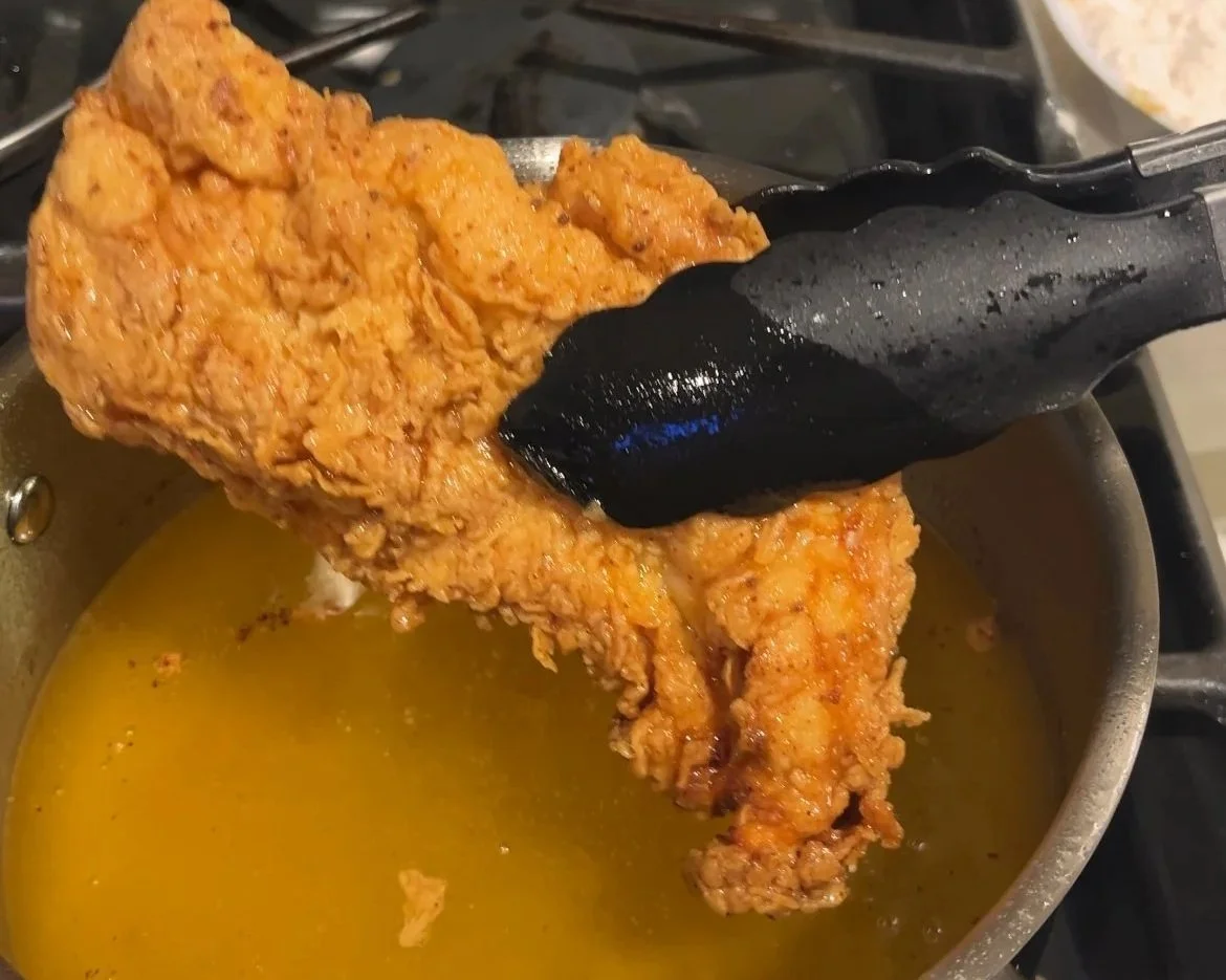 Fry chicken 4–5 minutes per side, until golden brown and crispy, and internal temp reaches 165°F.